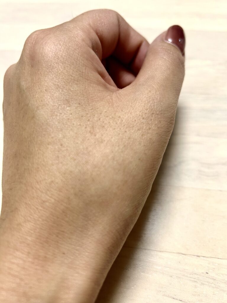 自然なツヤも出て、光のあたり方で肌がきれいに見えるのが嬉しいポイントです。厚塗り感はなく、素肌そのものが整ったような仕上げりです。